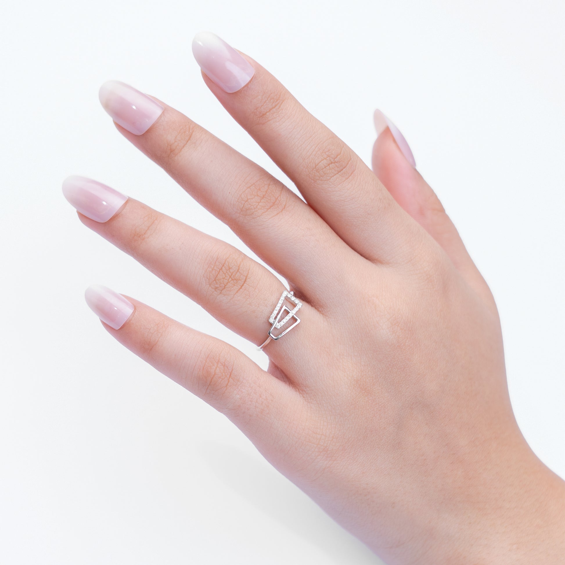 Step into modern elegance with this 0.20 Carat Diamond Geometric Open Frame Ring in 925 Sterling Silver. Featuring a sleek, contemporary design with two overlapping open frames—one adorned with a row of brilliant-cut natural diamonds—this ring blends minimalism with high-fashion appeal. Crafted from hallmarked sterling silver and certified for diamond authenticity, this lightweight and comfortable ring is perfect for everyday wear, special occasions, or as a thoughtful gift. The rhodium plating ensures a lasting shine and tarnish resistance, making it a piece you’ll treasure for years. Whether paired with casual outfits or formal attire, this geometric diamond ring adds the perfect sparkle to your style.