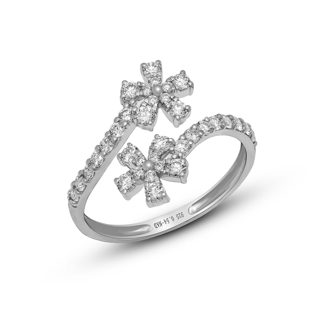 Celebrate femininity and elegance with the New Age Diamonds 0.50 Carat Lab Grown Diamond Flower Ring, crafted in authentic 925 sterling silver. Designed with a delicate dual-flower open band, this ring sparkles with brilliant lab-grown diamonds, symbolizing beauty, growth, and timeless charm.