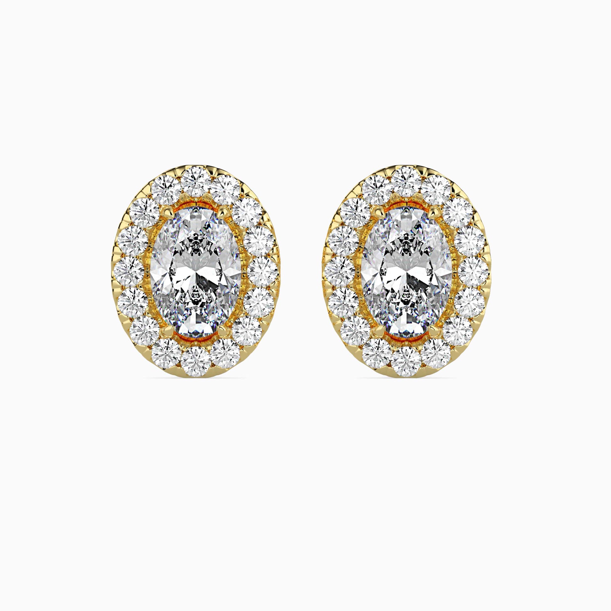 Add timeless elegance to your collection with our 1 CT Lab Grown Oval Cut Diamond Halo Stud Earrings in 14K Gold. Each stud showcases a 0.75-carat lab grown oval cut diamond, surrounded by a dazzling halo of lab grown round brilliant cut diamonds, amplifying its sparkle and presence. With a total weight of 1 carats per pair, these earrings deliver sophisticated shine for any occasion.