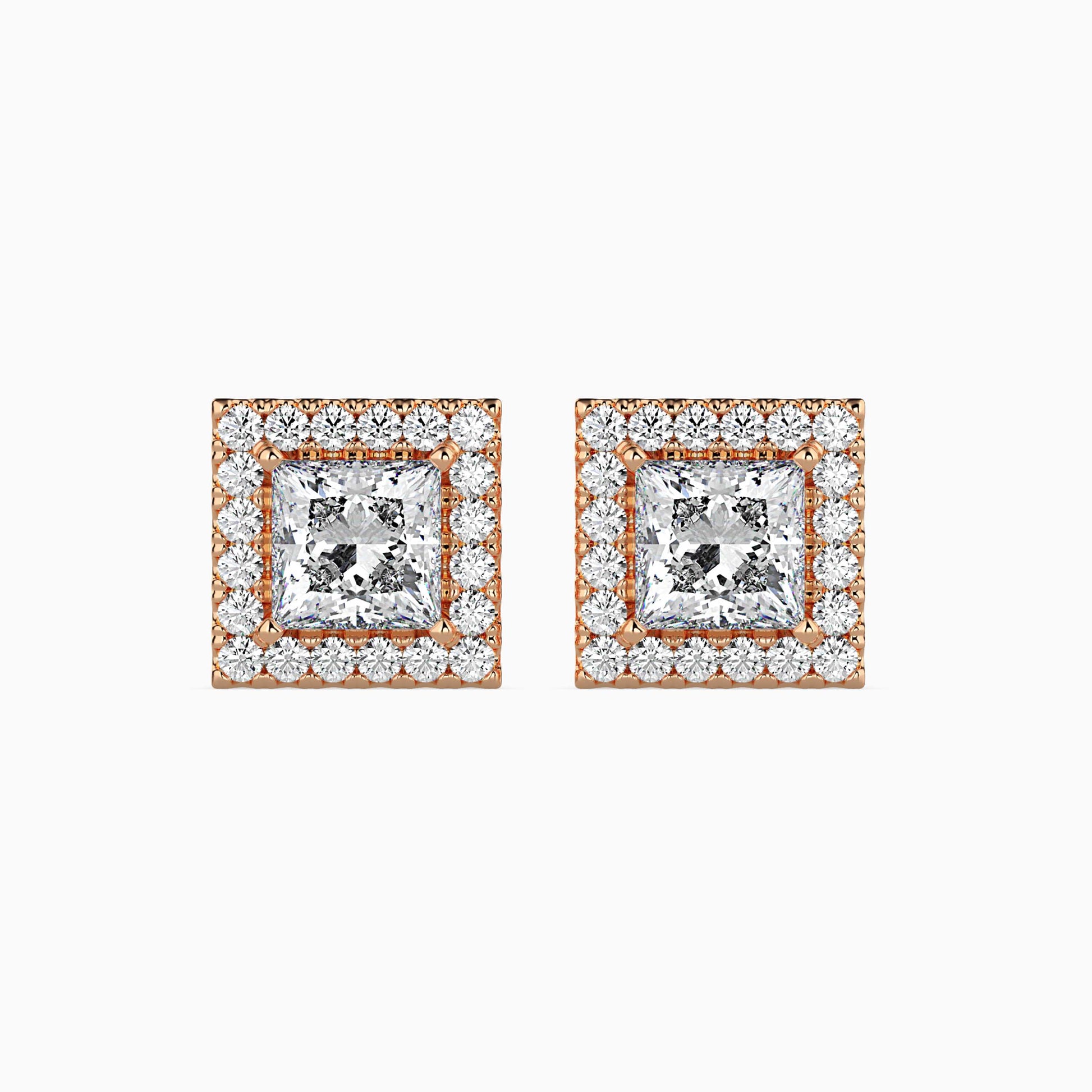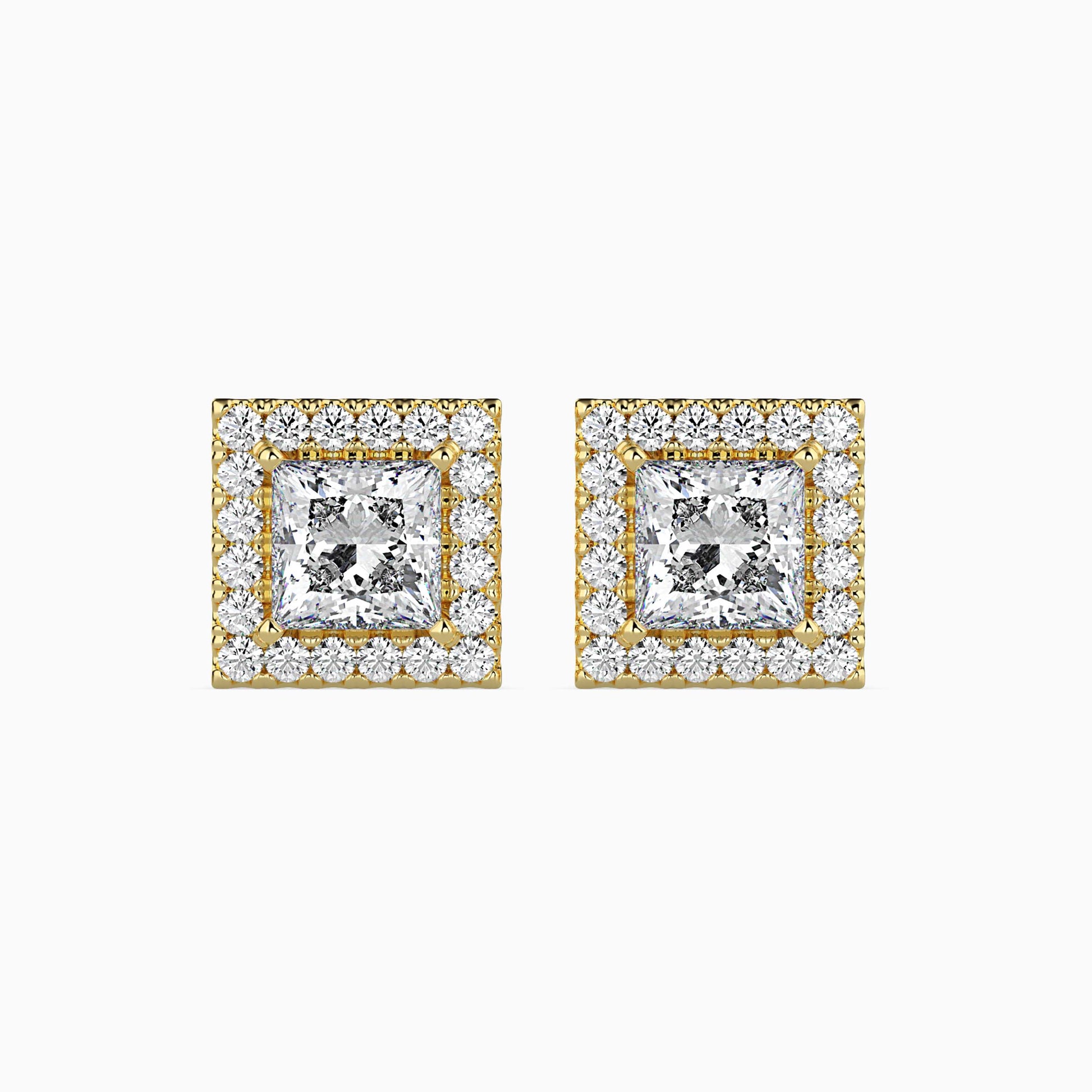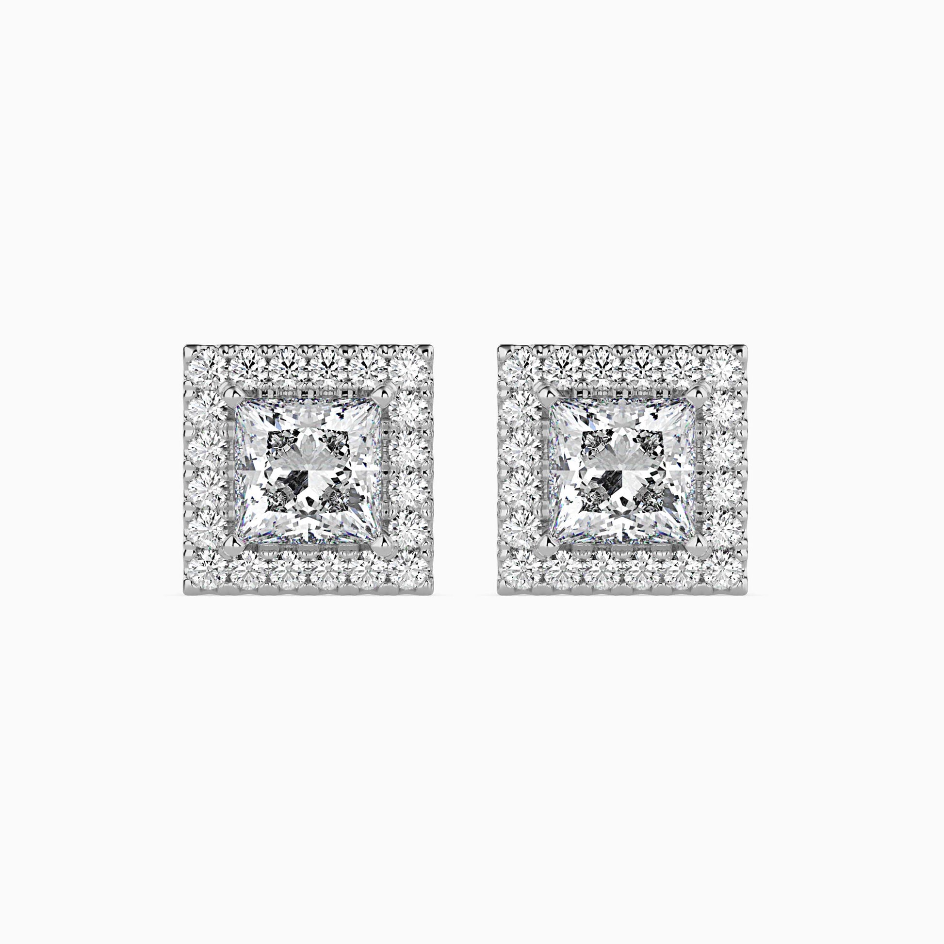 Make a statement of timeless elegance with these 2 CT Princess Cut Diamond Halo Sidestone Stud Earrings, featuring 1 CT diamonds on each stud for unmatched brilliance. Expertly crafted in 14K gold, each princess cut center stone is surrounded by a sparkling halo of meticulously set sidestones, enhancing fire and radiance. A perfect choice for weddings, anniversaries, and luxury everyday wear. Customization: Available on Request. Certification: IGI Certified for assured authenticity and quality.