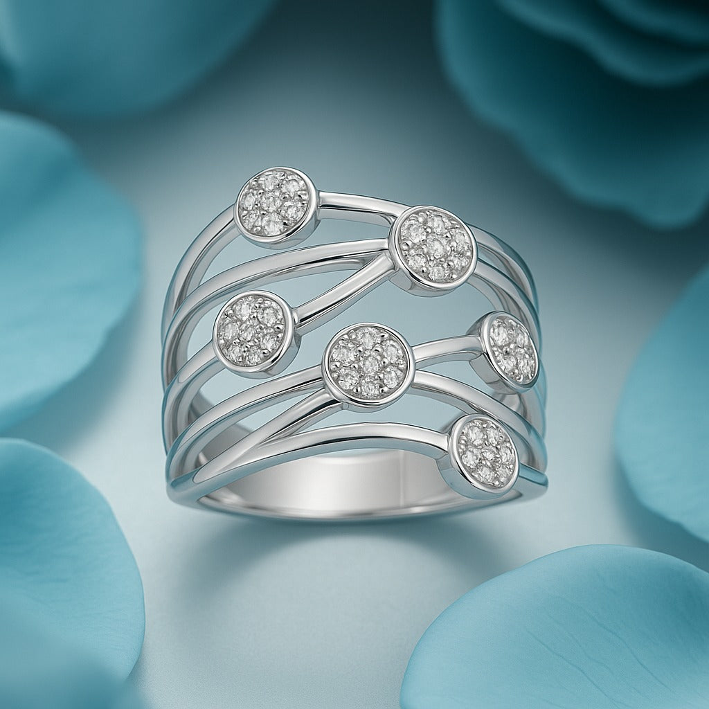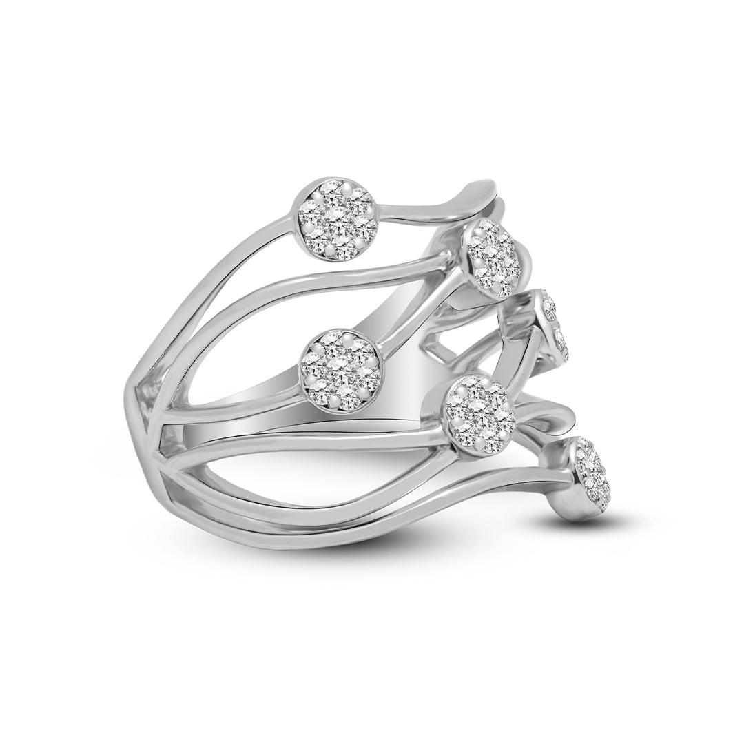 Add a touch of glamour with this IGI Certified Lab Grown Diamond Cocktail Ring crafted in 925 Sterling Silver. Designed with a multi-band openwork structure and six shimmering diamond clusters, this ring combines modern elegance with timeless luxury.