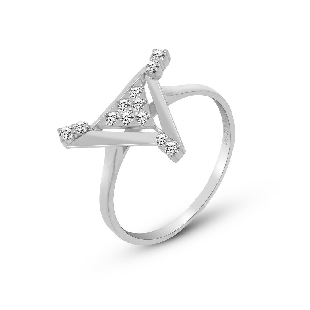 The geometric triangle frame is adorned with ethically sourced lab-grown diamonds, offering a brilliant sparkle while embracing sustainable luxury. Its modern and minimalist design makes it the perfect statement ring for fashion-forward women who appreciate clean lines and unique silhouettes.