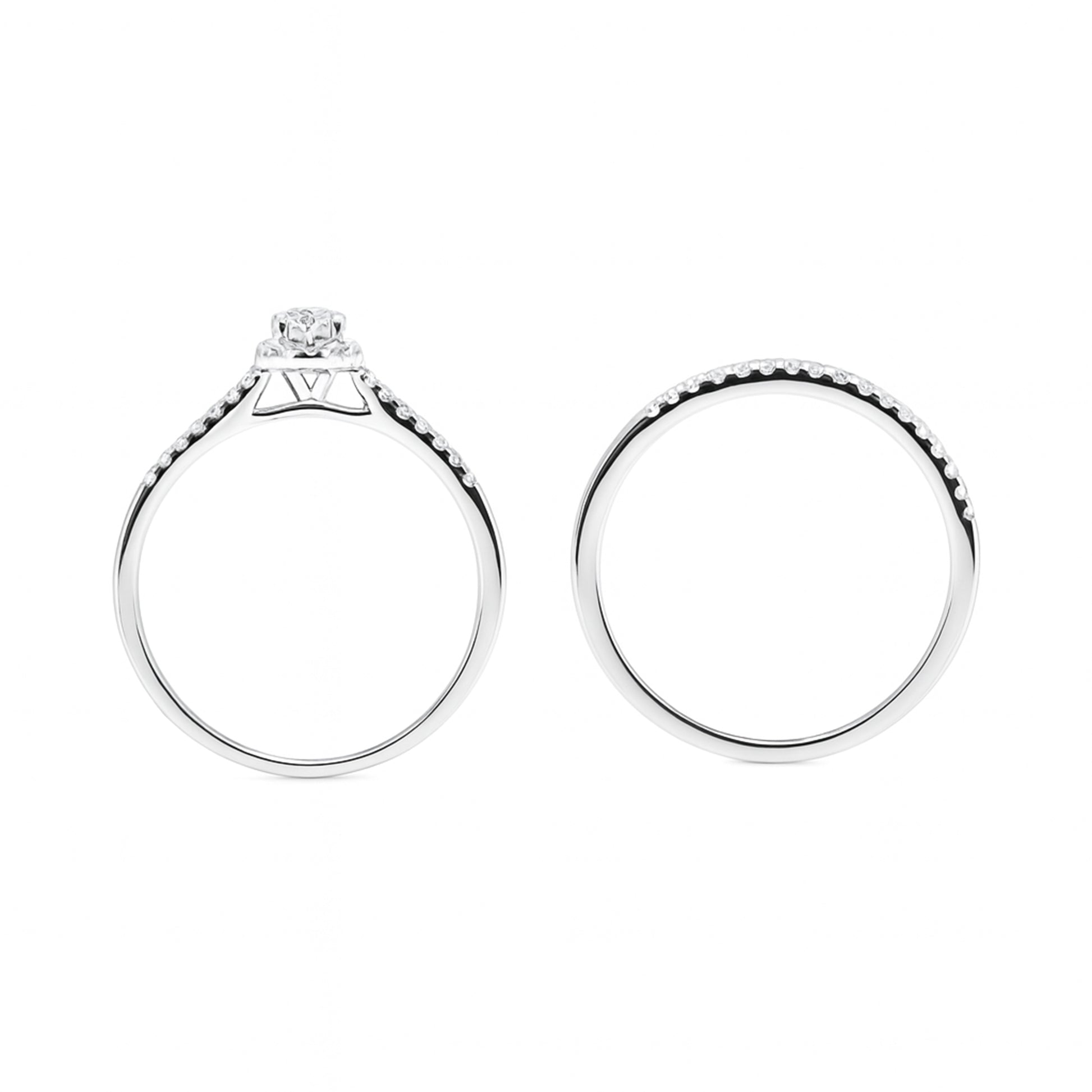 Elegant Design: Features a pear-shaped solitaire with a delicate pave-set matching band for a modern yet timeless engagement look.